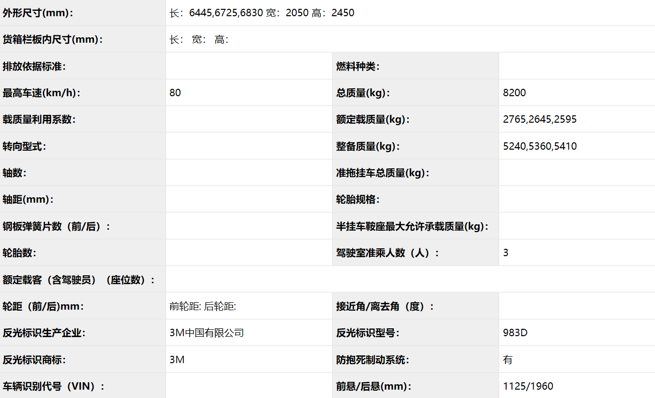 公告型號 XZJ5080ZYSJ5