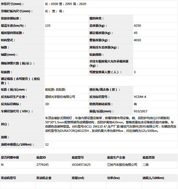 公告型號 BJK5042XPB