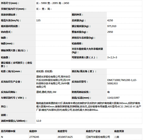 公告型號(hào) JX5049XYCMK25