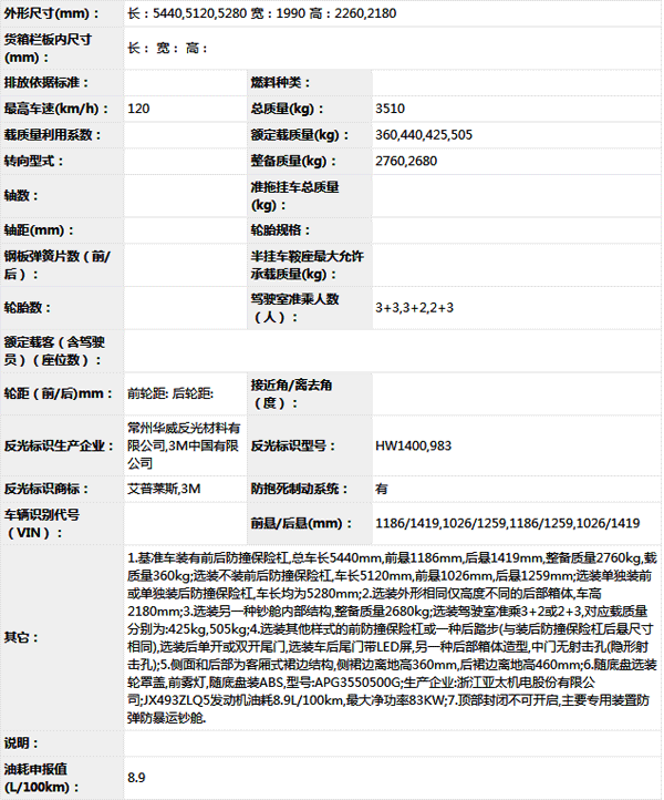 公告型號(hào) SLT5047XYCE2W