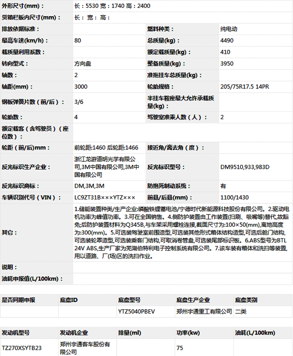 公告型號 YTZ5040TXSZ1BEV