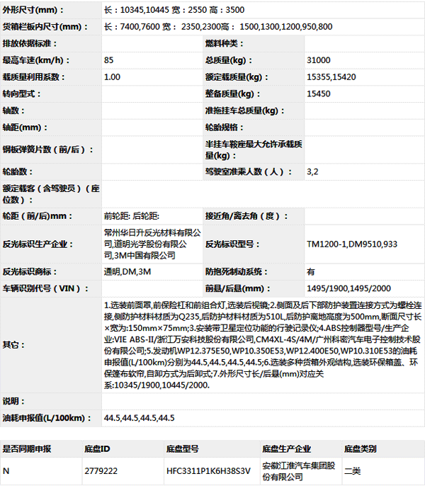 公告型號(hào) HFC5311ZLJP1K7H38S3V