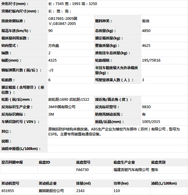 公告型號 ZXF5050TXFTZ3000/B5