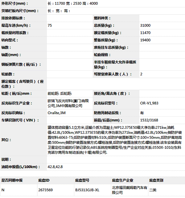 北汽福田BJ5313GJB-LC混凝土攪拌運輸車