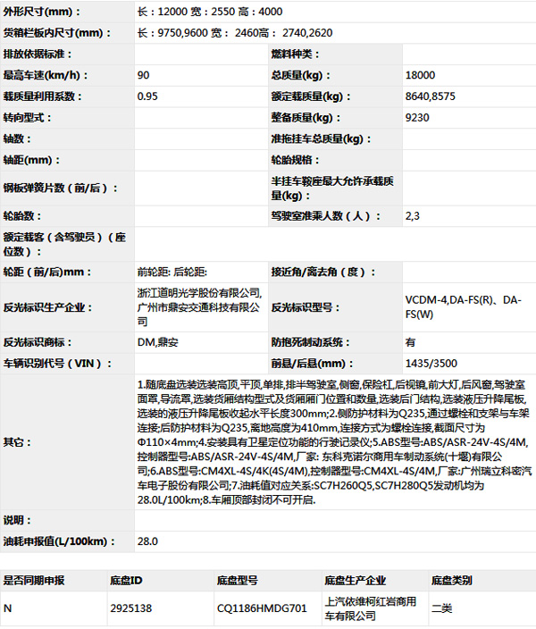 公告型號 CQ5186XXYHMDG701A
