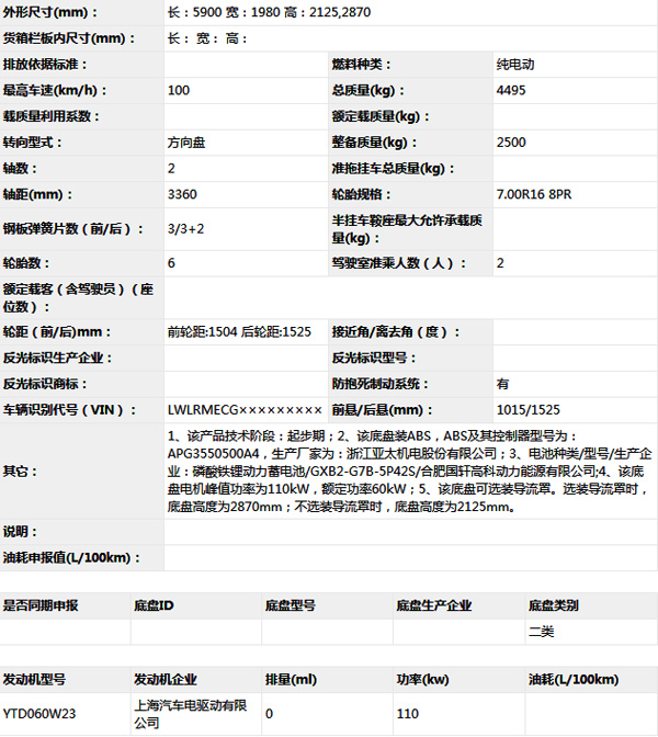 重慶慶鈴QL1041BEVECCA1Y純電動載貨汽車底盤
