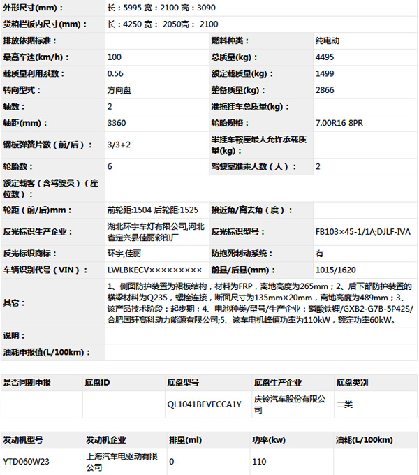 公告型號 QL5041XXYBEVECCA1
