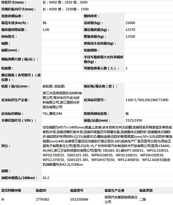 公告型號 SX5250ZLJ5B464B