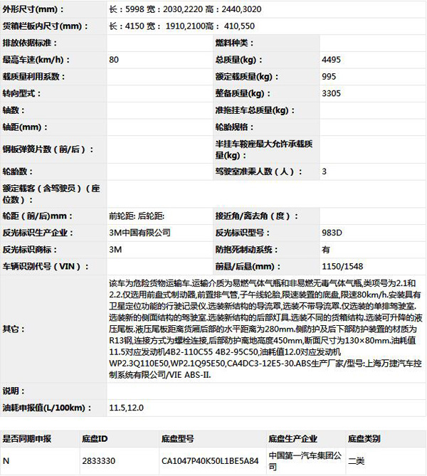 公告型號(hào) CA5047TQPP40K50L1E5A84
