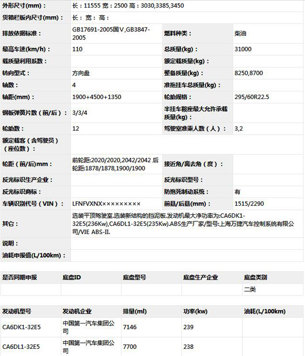 中國一汽解放牌CA1311P2K2L7T4E5A80