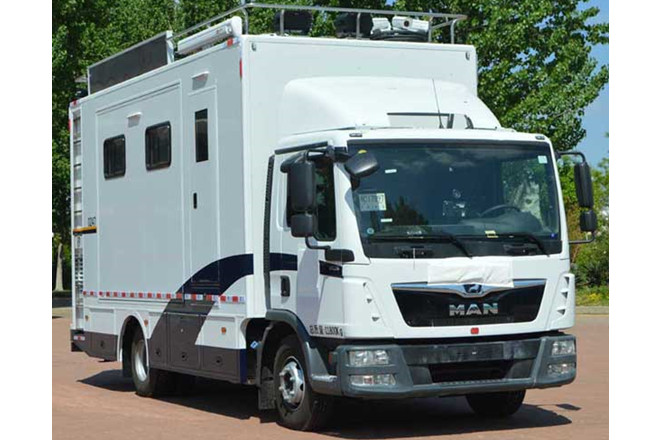 | 備注 | 頂部封閉,不可開啟;該車應在側(cè)面和后部安裝車身反光標識;該車側(cè)防護為裙邊結(jié)構(gòu),側(cè)防護最下部離地高度為370mm,后防護最下部離地高度為400mm. 材料為Q235A,結(jié)構(gòu)為2300mm×60mm×120mm;升降照明燈高為3935mm,LED屏高為3915mm,護欄高為3810mm.ABS型號:480020XXX0 ,生產(chǎn)廠:WABCO;專用裝置:指揮控制系統(tǒng)、傳輸系統(tǒng)、機柜等;發(fā)動機最大凈功率為184kw; | ||