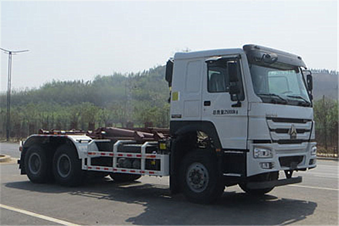 | 備注 | 僅用4300+1350軸距.側(cè)面防護(hù)裝置材料為Q235-A,連接方式為螺栓連接;后防護(hù)裝置材料為Q345,連接方式為螺栓連接,截面尺寸:120×60(mm),離地高500mm.隨底盤選裝副駕駛車門下視窗.隨底盤選裝限速裝置,限速89km/h.安裝具有衛(wèi)星定位功能的行駛記錄儀.ABS系統(tǒng)控制器生產(chǎn)企業(yè)/型號(hào)為威伯科(上海)管理有限公司/4460046300;選裝EBS,EBS系統(tǒng)控制器生產(chǎn)企業(yè)/型號(hào)為威伯科(上海)管理有限公司/EBS3.裝配發(fā)動(dòng)機(jī)為MC07.34-60,MC07.31-60,MC07.27-60時(shí)對(duì)應(yīng)油耗值(L/100km)均為32.1.該車主要裝置為鉤臂舉升機(jī)構(gòu),用于垃圾廂體的轉(zhuǎn)運(yùn). | ||