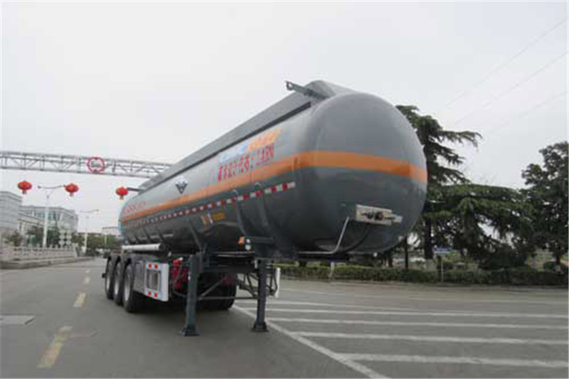 | 備注 | 罐體有效容積24.7立方米,罐體總?cè)萘?6立方米.罐體外形尺寸(mm):罐長(zhǎng)10772外徑φ1809.危險(xiǎn)貨物運(yùn)輸車輛的類型為:AT型.準(zhǔn)運(yùn)介質(zhì)的最大密度為1324千克/立方米.選裝側(cè)面防護(hù)裝置,選裝滅火器安裝位置及樣式,選裝罐體爬梯可裝在前部或后部或前后都裝,選裝護(hù)肩及與之匹配的扶手,選裝集液槽數(shù)量及位置及與之相匹配的扶手,選裝握手盒結(jié)構(gòu),選裝分段裝配式大梁和T型梁結(jié)構(gòu)、支腿支架樣式、側(cè)防護(hù)支架樣式,選裝后部上橫梁結(jié)構(gòu)、材料及牌照板位置、菱形告示牌, 選裝軟管存放箱、側(cè)面結(jié)構(gòu)及穿線管,選裝正前、正后爬梯及頂部燈支架新結(jié)構(gòu),選裝擋泥板、側(cè)面尾部操作箱、側(cè)面工具箱樣式、尾部標(biāo)志板安裝位置,該車裝空氣懸架.ABS廠家、型號(hào):威伯科(上海)管理有限公司,4005000880或廣州瑞立科密汽車電子股份有限公司,CM2XL-4S/2K(4S/2M)或浙江萬安科技股份有限公司,VIE-TABSⅡ或廣州市西合汽車電子裝備有限公司,XH-GQ4S2M-E01或翰德汽車產(chǎn)品(蘇州)有限公司,364570001.EBS廠家、型號(hào):克諾爾商用車系統(tǒng)企業(yè)管理(上海)有限公司,K11061XVXX或瀚德汽車產(chǎn)品(蘇州)有限公司,4S2M或威伯科(上海)管理有限公司, 4801020640或浙江萬安科技股份有限公司,VIE TEBS-I或廣州瑞立科密汽車電子股份有限公司,CM-TEBS.側(cè)防護(hù)材料為鋁合金,螺栓連接;后防護(hù)材料為Q235或鋁合金,螺栓連接,后防護(hù)斷面尺寸80×150mm,離地高495mm.采用適用于牽引危險(xiǎn)品運(yùn)輸半掛車的牽引車. | ||