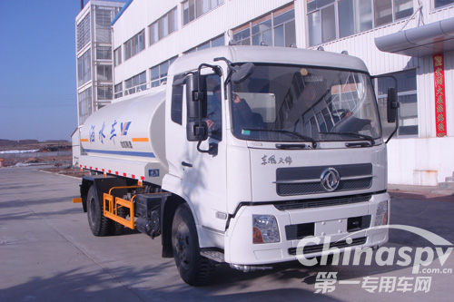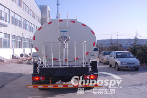 本車以專用取力器為動力源,有傳動軸將動力傳給水泵,能使水泵在額定轉速下運轉,通過操作控制系統(tǒng)及管網將自然水吸入罐內或將罐內的水按設定管路排出罐外,從而完成各項功能。其功能如下:
